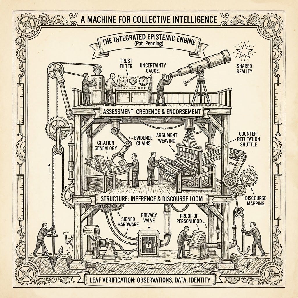 Social media platforms struggle under adversarial and attentional pressures. But distributed, decentralised context-provision, like the early success stories in Community Notes, can serve as a widely-accessible point of distribution (and this is just one form factor among many possible). In turn, foundational epistemic tooling can feed systems like Community Notes.